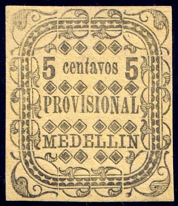 Вначале штат, а затем департамент Антиокия (административный центр — Медельин) выпускал собственные почтовые марки в 1868—1904 годах. Текст на почтовых марках оригинальных рисунков: «Es Us de Colombia» («СШ Колумбии»), «Correos» («Почта»), «ES de Antioquia» («Суверенный штат Антиокия»), «EE UU de Colombia» («СШ Колумбии»), «Eo So de Antioquia» («Суверенный штат Антиокия»), «Correos de Antioquia» («Почта Антиокии»), «Colombia» («Колумбия»), «R de Colombia» («Республика Колумбия»), «D de A» («Департамент Антиокия»), «Provisional» («Временно»), «Republica de Colombia» («Республика Колумбия»), «Correos del departamento de Antioquia» («Почта департамента Антиокия»), «Registro» («Заказное»), «R» («Заказное»), «UPU» («Всемирный почтовый союз»), «Antioquia» («Антиокия»)[9].