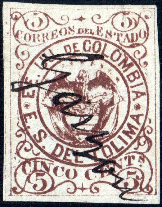 Толима (административный центр — Ибаге): 12 июля 1861 года, подняв вооружённый мятеж против конституционного правительства президента Мариано Оспины Родригеса, генерал Томас Сиприано де Москера создал суверенный штат Толима, выделенный из состава суверенного штата Кундинамарки (Sovereign State of Cundinamarca). Почтовые марки выпускались с 1870 по 1906 год.