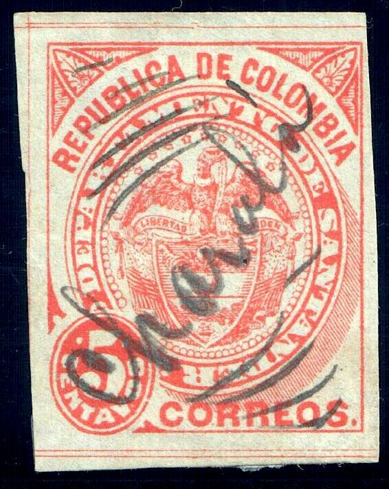 Сантандер (административный центр — Букараманга) также выпускал почтовые марки с 1884 года по 1903 год[9]. На почтовых марках оригинальных рисунков надписи: «Estados Unidos de Colombia» («СШ Колумбии»), «Estado Soberano de Santander» («Суверенный штат Сантандер»), «Correos» («Почта»), «Republica de Colombia» («Республика Колумбия»), «Departamento de Santander» («Департамент Сантандер»)[9]. Надпечатки на почтовых марках: «Provisional» («Временно»), «Correos de Santander» («Почта Сантандера»)[9].