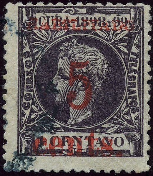 19 декабря 1898 года до поступления почтовых марок из США ещё оставался целый месяц. Местные власти решили эту проблему получением разрешения от временной военной администрации США поручить местной типографии сделать надпечатку новых тарифов на имеющихся в наличии испанских кубинских марках, первоначально четырёх разных номиналов.