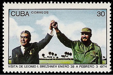 Кубинские марки были также посвящены П. И. Чайковскому (с изображением сцен из «Лебединого озера» и дома композитора в Клину)[17], М. В. Ломоносову, встрече Л. И. Брежнева с Фиделем Кастро[≡]. Карета российской императрицы Екатерины Второй была запечатлена в 1994 году на марке кубинской серии «Кареты»[13].