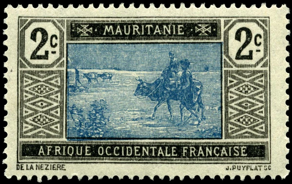 Первые почтовые марки Мавритании колониального типа появились в 1906 году[2][3][4]. На марках этого периода имелись следующие надписи на французском языке: «RF. Afrique-Occidentale française. Mauritanie» («Французская Республика. Французская Западная Африка. Мавритания»), «Postes» («Почта») и «Chiffre-taxe à percevoir» («Сумма, подлежащая доплате»)[4].