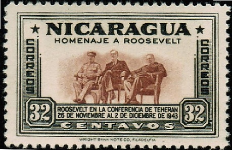 Портрет Сталина на марках зарубежных несоциалистических государств появился ещё при его жизни. Первыми — самыми ранними из всех зарубежных стран — были выпуски Колумбии (июль 1945) и Никарагуа (июнь 1946), на которых была отражена тема «большой тройки». Никарагуанская марка (Sc #699) вышла в свет в серии памяти Рузвельта и была посвящена Тегеранской конференции 1943 года.