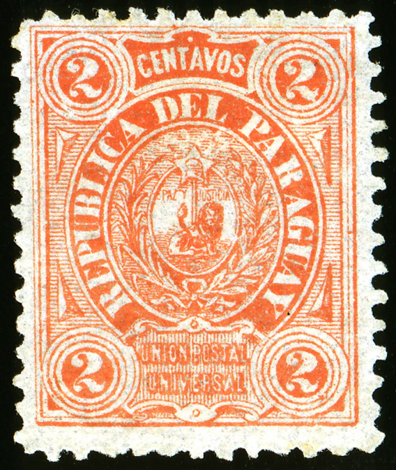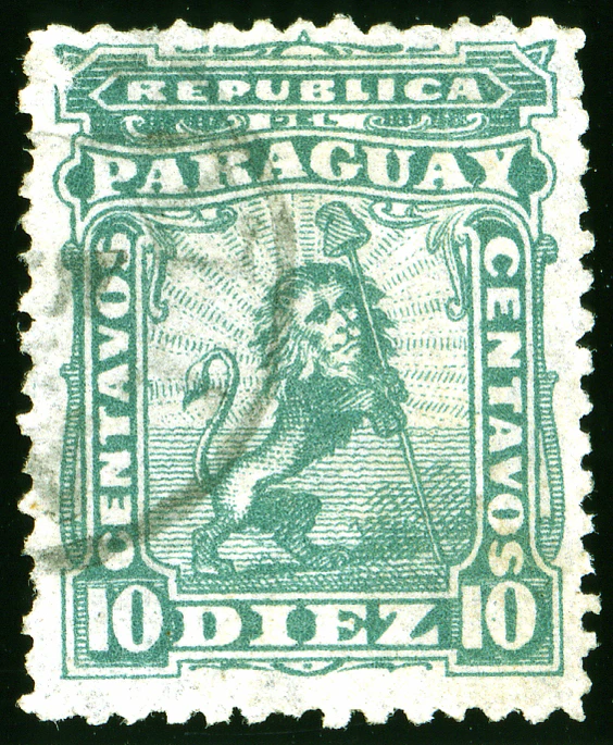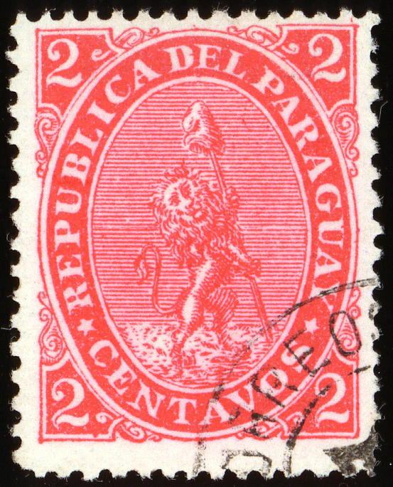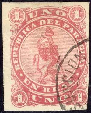 1 августа 1870 года Республика Парагвай выпустила свои первые почтовые марки (номиналом в 1, 2 и 3 реала)[1][2][3][8], изготовленные литографским способом Р. Ланге (R. Lange) в Буэнос-Айресе[9]. На марках был изображён герб Парагвая[6] — стоящий на задних лапах лев, поднимающий республиканскую шляпу[9][≡]. Оценка серии по каталогу «Ивер» составляет около 330 евро.[10]