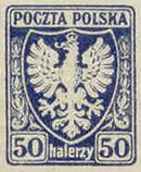 Первыми стандартными почтовыми марками Третьей Речи Посполитой стали надпечатки нового номинала на марках 17-го и 18-го выпусков Полькой Народной Республики (350 злотых на 15 злотых 17-го выпуска и 700 злотых на 60 злотых 18-го выпуска). В 1990—1991 году была продолжена эмиссия марок восемнадцатого стандартного выпуска Польской Народной Республики. В 1990 году были эмитированы марки в 2000 и 5000 злотых, а в 1991 — в 700 злотых[19].