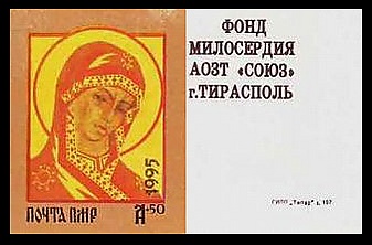 В феврале 1996 года приказом Республиканского управления связи в обращение ввели почтово-благотворительные марки ПМР, посвящённые дню празднования иконы «Пресвятая Богородица Огневидныя». Марки предназначались для оплаты пересылки простых писем в пределах территории ПМР, дополнительный сбор шёл на благотворительные цели. На обороте каждой марки чёрной краской ставилась надпись в четыре строки: «Фонд милосердия АОЗТ „Союз“ г. Тирасполь». Марки также выпускались в малых листах по восемь штук (4 × 2) без надписи на обороте. Автором миниатюр был художник М. Руденко. Печатались они на тираспольской типо-офсетной фабрике «Типар»[22].