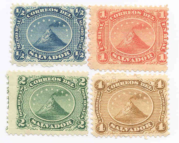 Серия состоит из почтовых марок четырёх номиналов: ½ реала (синяя), 1 реал (красная), 2 реала (зелёная) и 4 реала (тёмно-коричневая), выпущенных в листах по 100 экземпляров. На них изображён действующий вулкан и 11 звёзд, образующих полукруг над вулканом: каждая звезда представляет одну из сальвадорских провинций в те годы: Сан-Сальвадор, Ла-Либертад, Сонсонате, Санта-Ана, Ла-пас, Кускатлан, Усулутан, Сан-Висенте, Сан-Мигель, Ла-Унион, Чалатенанго. Стоимость первой серии, по оценке каталога «Ивер», составляет 18 евро.[6]