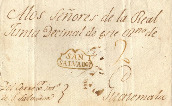 Самая первая известная почтовая отметка Сальвадора была обнаружена на письме, отправленном из Санта-Аны в Гватемалу 30 июля 1780 года. На нём стоит оттиск почтового штемпеля Санта-Аны домарочного периода.