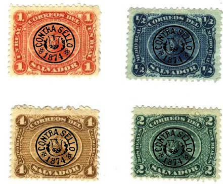 Через семь лет после первого выпуска с вулканом правительство Сальвадора решило прекратить его использование, и с помощью резинового штампа нанесло на имевшихся запасах марок оттиск контрольного штемпеля чёрного цвета с национальным гербом в центре и с надписью по окружности исп. «Contrasello — 1874» и кругом. Причины использования этого ручного штемпеля остаются неизвестными. Тем не менее, со временем появились два объяснения: