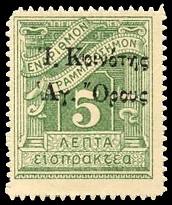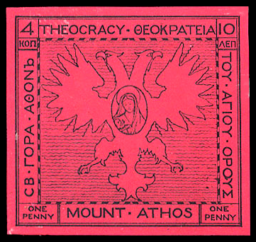 В течение 1916 года на почтовых и доплатных марках Греции, в том числе выпущенных в 1912—1913 годах для оккупированных и в дальнейшем присоединённых ей в ходе войны османских территорий Эгейской Македонии, Эпира и островов Эгейского моря (так называемой «Новой Греции»), были сделаны надпечатки с текстом «Священный Кинот Святой Горы» (греч. Ι. Κοινότης Αγ. Όρους)[36][40].