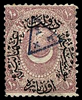 Османская почта с 1868 года использовала в отделении на Святой Горе Афон стандартные марки своих общеимперских выпусков[20], причём в 1873—1882 годах с надпечаткой небольшого равностороннего треугольника с тремя инициалами имени начальника почтового отделения по углам — Χ/Σ/Π (Хаджи Сотирис Петропулос, греч. Χατζη Σωτήρης Πετρόπουλος)[27]. Каталог «Скотт» упоминает о надпечатке, но отдельных номеров таким маркам не присваивает[21].