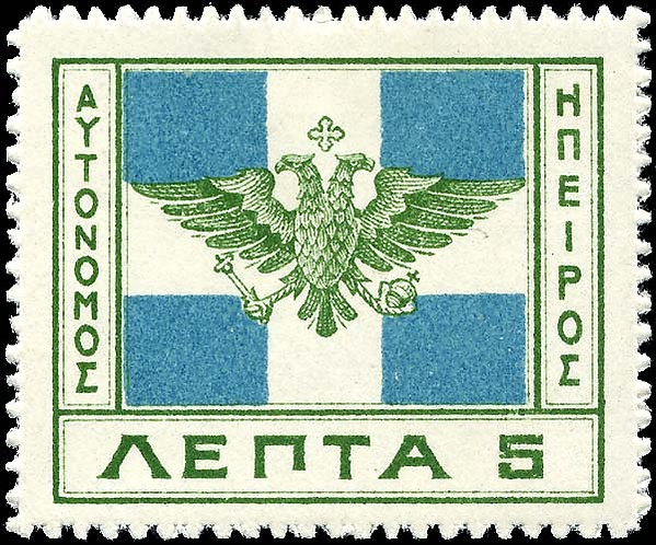 Первыми почтовыми марками, используемыми в Эпире после его отвоевания Грецией у Османской империи в 1912 году, были греческие марки с надпечаткой греч. «ΕΛΛΗΝΙΚΗ ΔΙΟΙΚΗΣΙΣ» («Греческая администрация»). Им на смену в 1913 году пришли вновь выпущенные греческие марки, так называемый «военный выпуск». Оба выпуска предназначались только для использования в недавно оккупированных районах или «новых территориях».