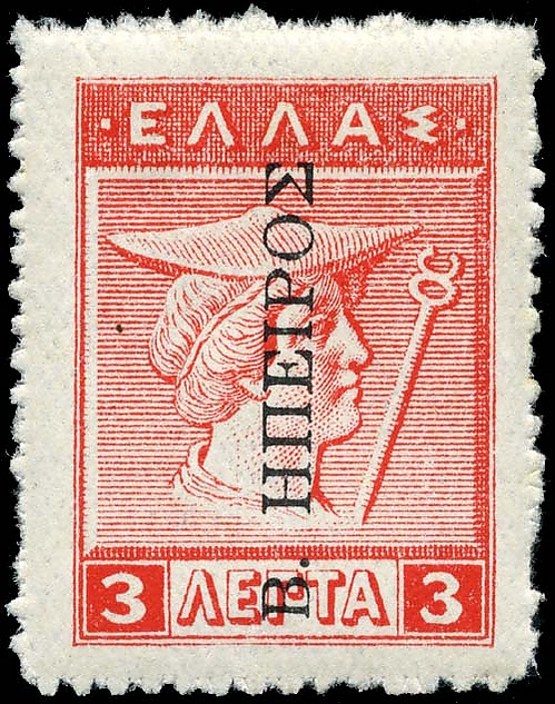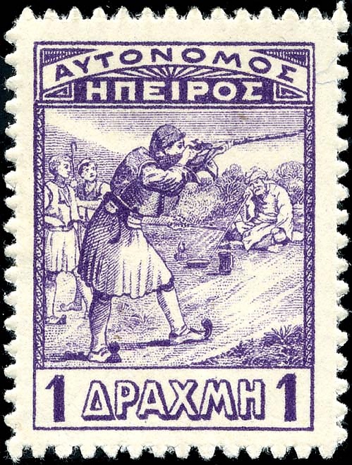 Греция возобновила контроль над Эпиром в ноябре 1914 года; 30 числа того же месяца для удовлетворения почтовых нужд региона были выпущены марки «военного выпуска» с надпечаткой греч. «B. ΗΠΕΙΡΟΣ», выполненной горизонтально в чёрном цвете; также были сделаны надпечатки красного цвета, но так и не были выпущены в обращение. (Известны несколько гашеных экземпляров.)[5] Они заменили стандартные выпуски Эпира. В декабре 1915 года такая же надпечатка была нанесена вертикально, в направлении либо снизу вверх, либо сверху вниз, на греческие стандартные почтовые марки 1911 и 1913 годов выпуска[6]. Все они подделывались.