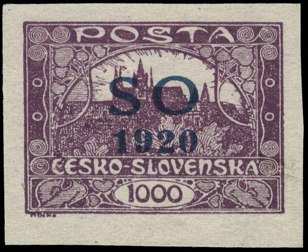 В 1920 году для плебисцитарной области Тешинской Силезии в районах, бывших под контролем чехословацких властей, на почтовых, экспрессных, газетных и доплатных марках Чехословакии и Польши были произведены надпечатки аббревиатуры «SO» или «S. O.» (от фр. Silésie Orientale — Восточная Силезия) и года «1920»[1][2].
