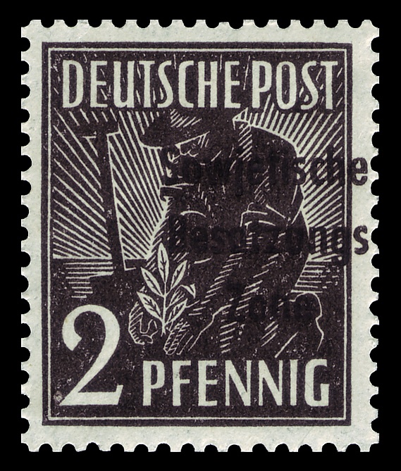 Директивной телеграммой № 14 от 3 июля 1948 года на территории СЗОГ в обращение были введены марки из стандартной серии Контрольного совета с типографской надпечаткой нем. «Sowjetische Besatzungszone» («Советская оккупационная зона»). Продажа их допускалась в небольших количествах. Для больших партий корреспонденции предписывалось использовать франкировочные машины[1][3][14].