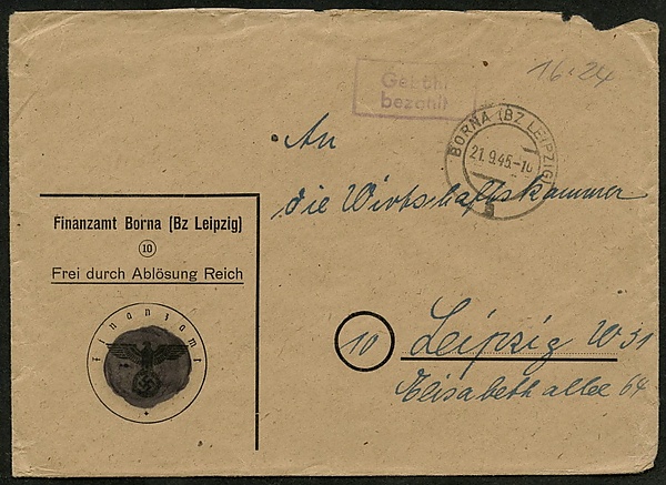 До августа 1945 года в Саксонии было разрешено использовать марки прежних выпусков, причём старое изображение покрывалось краской (так называемое «саксонское зачернение»)[1][3][12].