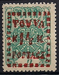 В ноябре 1932 года в связи с недостатком почтовых марок требуемых номиналов на гербовых марках была сделана ручная надпечатка каучуковым штампом слова «Poşta» чёрной краской и нового номинала металлическим нумератором большого и малого размера. Надпечатки производились в Кызыле. Почтовое использование таких почтово-гербовых марок подтверждено подлинными почтовыми отправлениями с ноября 1932 года по ноябрь 1934 года, когда в Туву были доставлены марки седьмого и восьмого выпусков в достаточном количествах[1].