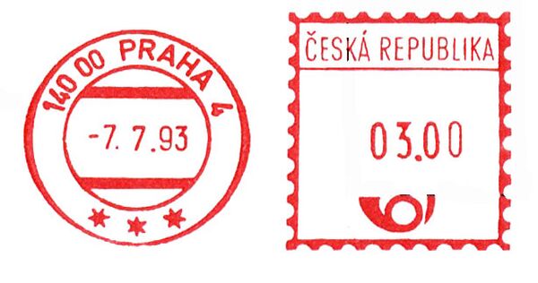 До введения собственных марок в Чехии имели хождение чехословацкие знаки почтовой оплаты. Их продолжали использовать в почтовом обращении вплоть до 30 сентября 1993 года[5].
