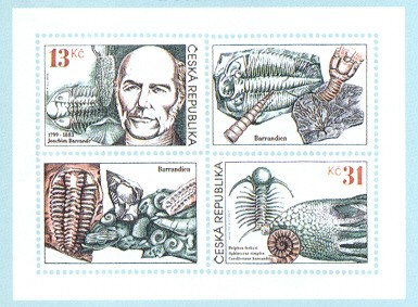 Пример малого листа Чешской Республики: выпуск в честь Йоахима Барранда, исследователя чешских трилобитов (1999)