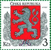 Первый почтовый блок Чешской Республики с изображением большого государственного герба вышел в июне 1993 года[7].