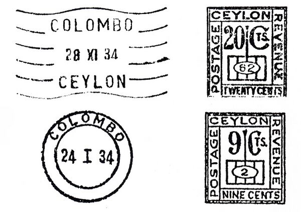 В 1813 году на Цейлоне были введены резиновые почтовые штемпели[4]. Единственным свидетельством работы британской почтовой системы до 1815 года является штамп «Colombo Post Free» («Почта Коломбо. Бесплатно») на письме британского солдата 1809 года, когда британские войска Королевской артиллерии покоряли Викраму Раджасингхи (1798—1815), короля Канди, чьи внутренние территории никогда не были под влиянием голландцев[6][8].