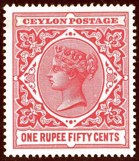 Ещё восемь почтовых марок вышли в 1857 году, все с портретом королевы Виктории. Одна из пяти марок, выпущенных 23 апреля 1859 года[≡], считается самой ценной почтовой маркой Шри-Ланки: это марка номиналом в 4 пенса тёмно-розового цвета, известная как «Dull Rose» («Тускло-розовая»)[13][≡].