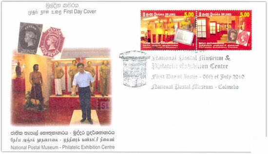 Первая[^] и самая редкая цейлонские марки[^] представлены на сцепке и конверте первого дня Шри-Ланки, посвящённых открытию Национального почтового музея (2010)