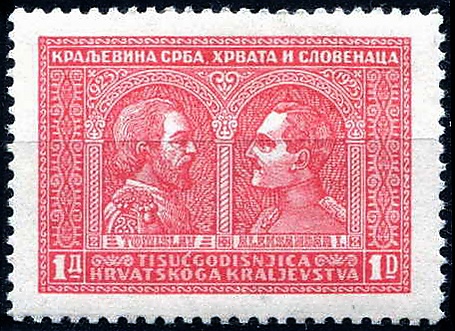 В ноябре 1929 года в обращение поступила первая серия из трёх коммеморативных марок Королевства Югославия, в честь 1000-летия Хорватского королевства. На марках были изображены следующие сюжеты: базилика на Дуванском поле (ныне город Томиславград, Босния и Герцеговина), построенная в память коронации короля Томислава; портреты короля Томислава и короля Александра I Карагеоргиевича; король Томислав, сидящий на троне с присланными папой римским Львом X атрибутами королевской власти (копия со старинной картины, находящейся в католическом соборе в Сплите). Миниатюры были выполнены по эскизам профессора Пероша. Клише изготовлено в Венской государственной типографии, а марки отпечатаны в государственной типографии в Белграде. На марках указано прежнее название государства Краљевина срба, хрвата и словенаца или Kraljevina srba, hrvata i slovenaca[1][6][10].