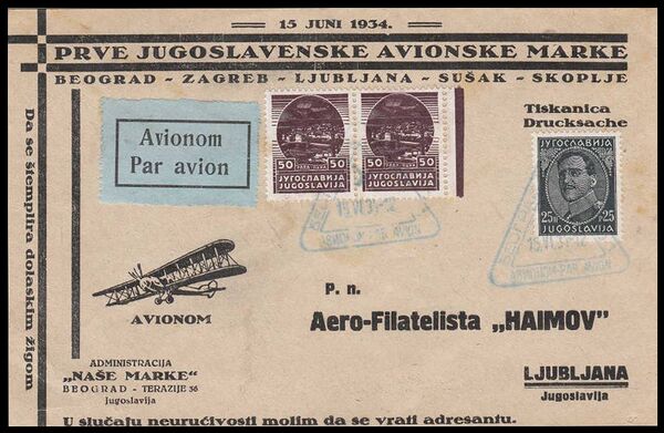 Первая линия авиапочты Королевства СХС была открыта 15 апреля 1923 года полётом Белград — Венеция. 15 февраля 1928 года вступили в силу Правила перевозки почты по воздуху. В тот же день состоялся пробные полёт Загреб — Белград — Загреб. 9 октября 1929 года открылась линия Белград — Загреб — Вена. 20 августа 1933 года открылась линия Любляна — Загреб[3][5].
