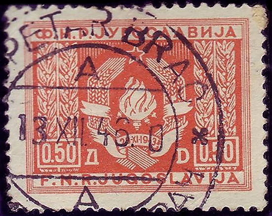В ноябре 1946 года югославская почта выпустила служебные марки с изображением герба ФНРЮ. Марки были в обращении до 31 декабря 1948 года. Их остаток использовался до 31 декабря 1951 года в качестве почтовых марок[1][6].