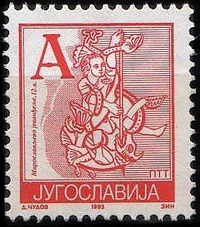 В апреле 1993 года была выпущена первая стандартная безноминальная марка с изображением буквицы из Мирославова Евангелия[6].