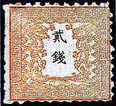 В 1872 году моны перестали быть дробными единицами иены и были изданы марки такого же базового рисунка с драконами, что и в первом выпуске, но с номиналами в сенах[1][≡].