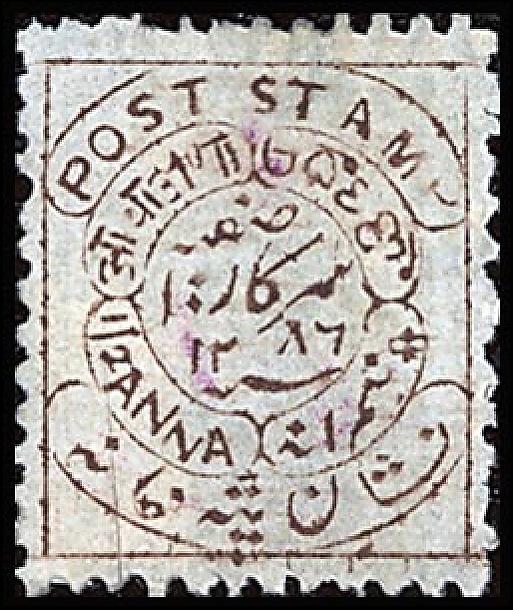 | Бхопал | 1876 | 1949 | Феодальное княжество на территории нынешнего штата Мадхья-Прадеш. Бхопал пыталось остаться независимым после раздела Индии, но было фактически аннексировано Индией 1 июня 1949 г. Всего были выпущены 354 марки номиналом от 3 паев до 1 рупии, последняя — в июле 1949 г., и вышли из обращения 1 мая 1950 г. |