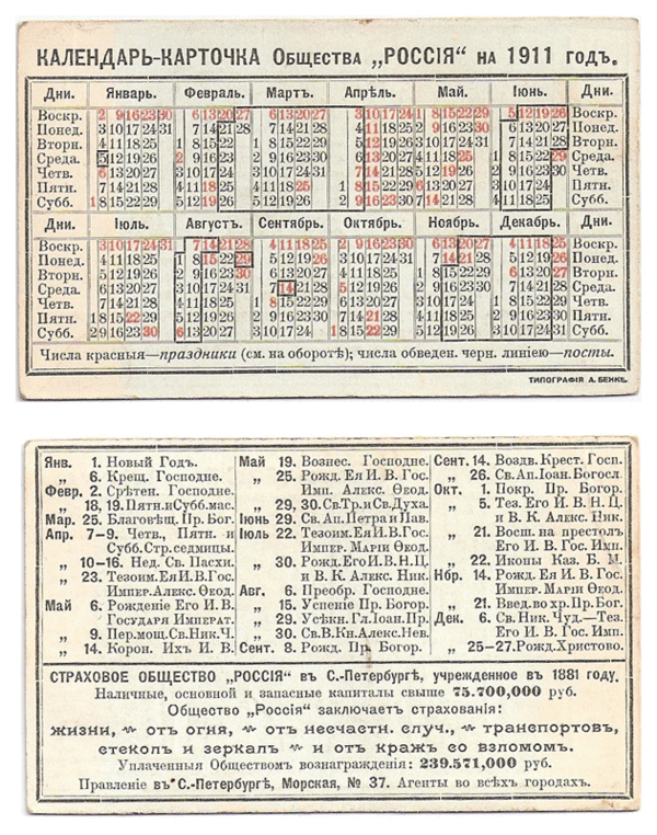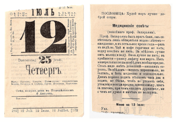 В 1917 году стали уже встречаться несколько упрощённые календари — без царских дней, в остальном — без изменений.