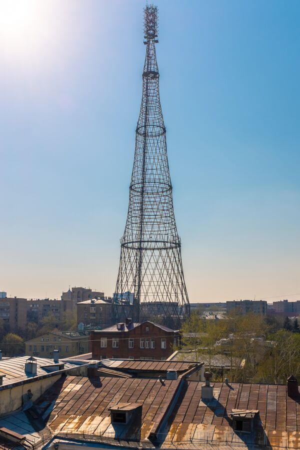 14 февраля 1922 года в Москве на Шаболовке по проекту и под непосредственным руководством выдающегося инженера Владимира Шухова было завершено строительство самой высокой в стране 160-метровой[2][3] ажурной цельнометаллической башни, названной впоследствии его именем (была установлена и окончательно закреплена последняя шестая секция башни), ставшей опорой для радиопередатчиков Московской радиотелеграфной станции[2][Комм 3]. 28 февраля на башню была установлена антенная мачта, на чём закончились работы Шухова.[5]