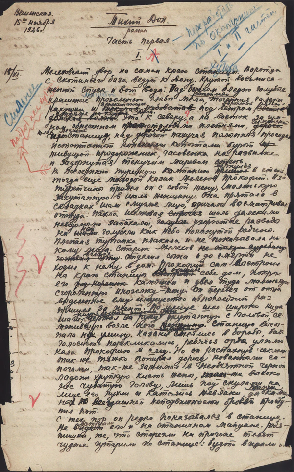 Окончательный вариант романа, судя по сохранившейся рукописи, был начат 6 ноября 1926 года в станице Вёшенской.