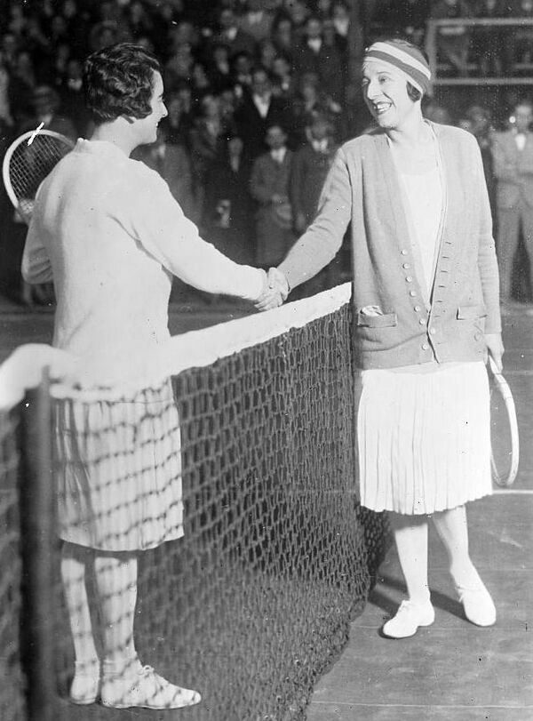 После войны законодательницей теннисной моды стала Сюзанн Ленглен. Другая многократная победительница турниров Большого шлема, Элизабет Райан, однажды сказала: «Все теннисистки должны на коленях благодарить Сюзанн за избавление от тирании корсетов». Благодаря Ленглен в женском теннисе утвердились юбки до колена и короткие рукава. Кроме того, после Ленглен в моду вошли головные платки, а несколько позже Хелен Уиллз ввела в моду защищающие глаза козырьки, подобные принятым в гольфе[66].