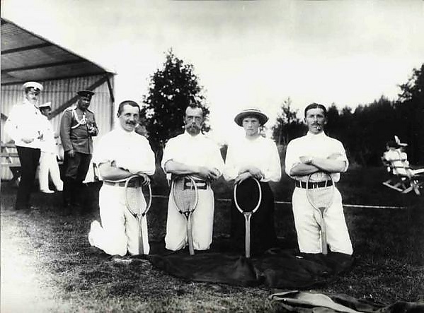 В конце 1870-х годов лаун-теннис начинает развиваться в России. Первая лаун-теннисная секция была организована при Санкт-Петербургском крикет-клубе[20]. Первый международный турнир в России состоялся в 1903 году в Санкт-Петербурге. Одновременно этот турнир был и первым чемпионатом Санкт-Петербурга. Турнир проводился в мужском одиночном и парном разрядах при участии 15 российских и трёх иностранных теннисистов, которые и одержали победу в обоих разрядах[21]. В 1907 году прошли первые Всероссийские состязания в лаун-теннис, которые выиграл Георгий Брей[22], а в 1908 году был основан Всероссийский союз лаун-теннисных клубов, главный руководящий орган российского тенниса до 1918 года[23].