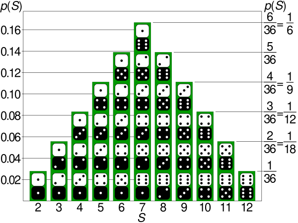 Если число случаев, в которых получается сумма , равно , а число случаев, в которых получается сумма , равно , то стоимость моего ожидания равна .
