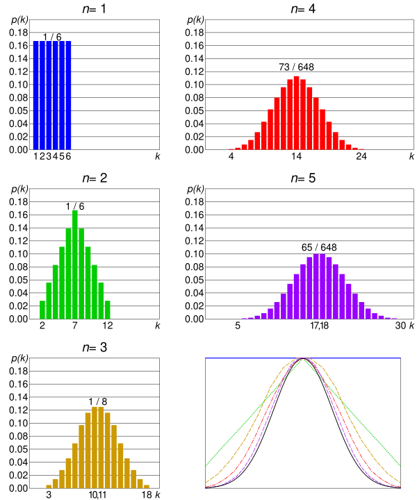 - найти вероятность того, что сумма независимых случайных величин с одинаковым (известным) законом распределения находится в заданных пределах. Особую важность эта проблема представляла для теории ошибок измерения, в первую очередь для оценки погрешности наблюдений;