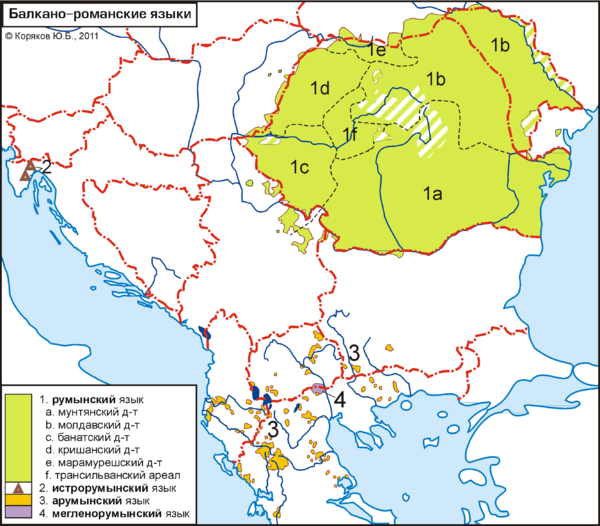 - считается отдельным языком, развившимся непосредственно из балканской латыни[12] (П. Скок);