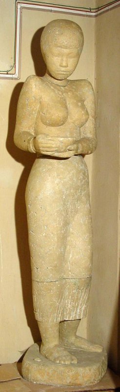 Скульптура представляет фигуру стоящей молодой девушки. Голова слегка повёрнута к правому плечу, лицо широкое и немного приплюснутое. Волосы короткие. Девушка одета в длинную юбку. На шее находится ожерелье, состоящее из двух рядов, а на руках надеты браслеты. Талия стянута ремешком. Фигура установлена на основании прямоугольной формы со сглаженными углами. По торцу основания нанесён растительный орнамент и присутствует надпись « ». Размеры скульптуры составляют 162х54,5х45 см.