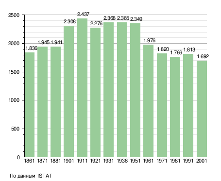 Население составляет 1692 человека (2008 г.), плотность населения составляет 169 чел./км². Занимает площадь 10 км². Почтовый индекс — 98025. Телефонный код — 090.