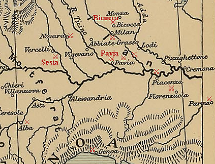 В Италии союзники сосредоточили около Болоньи 23 тысяч человек, под начальством престарелого Проспера Колонны. Французский наместник в Милане, Лотрек, с трудом нанял 12 тысяч швейцарцев, которые одни могли противостоять великолепной испанской пехоте.