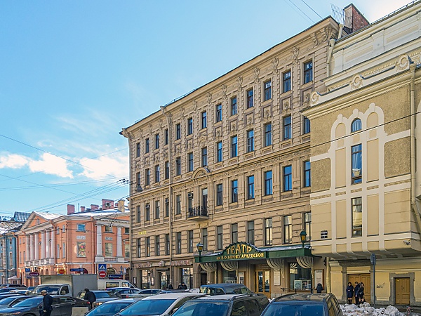 № 19 / 7 по Садовой улице — здание в стиле модерн (1883, архитектор Михаил Петерсон). Дом занимает Театр имени Комиссаржевской.