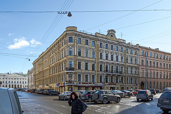 № 2 / 6 по набережной канала Грибоедова — здание 1852 года, в 1909 году перестроенное в стиле модерн. Архитекторы Николай Павлович Гребёнка, Александр Александрович Оссоланус (частичная перестройка здания), Фёдор Иванович Лидваль.