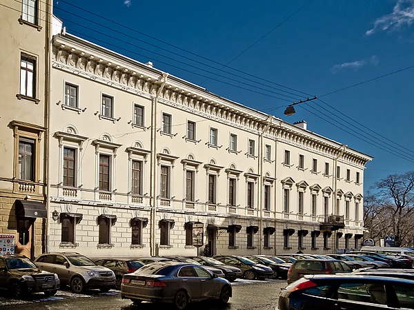 7832088000 — здание в стиле эклектики. Особняк, построенный в 1836 году, перестраивался в 1856—1860 годах для Центрального управления Главного общества российских железных дорог (архитекторы Гаральдом Боссе и Людвиг Бонштедт. В 1890—1892 годах перестраивалось архитектором Юлием Бенуа. С 1965 года здесь находился Ленинградский сельскохозяйственный техникум имени С. М. Кирова[16].