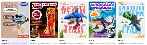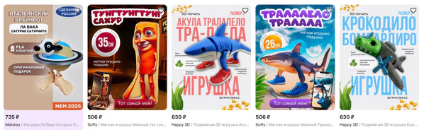 Затем в TikTok распространился аналог мема Bombombini Gusini — гибрид военного самолёта и гуся. За три дня он набрал более 251 000 просмотров и 23 000 лайков. Чуть позже пользователь под ником abfalleimer_ahh опубликовал ролик с изображением акулы в кроссовках, получивший название Tralalero Tralala, набравший более 8 миллионов просмотров и 750 000 лайков за два дня.