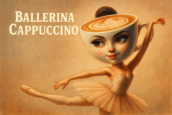 - Балерина Капучино — это персонаж, воплощённый в виде балерины с чашкой капучино вместо головы. Образ отличается лёгкостью и грациозностью, что позволяет рассматривать его в контексте поэтической эстетики и культурного символизма.