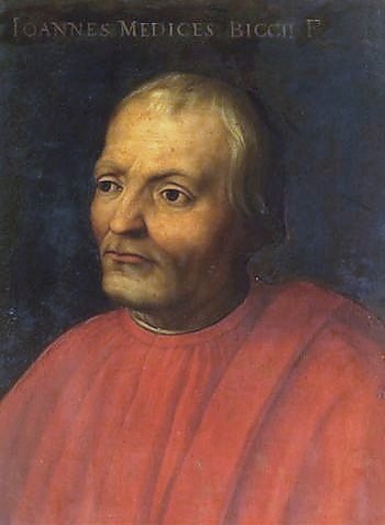Медичи управляли крупнейшим в Европе банком Медичи, а также множеством других предприятий во Флоренции и других местах[15]. В начале XV века Джованни Медичи достиг высших должностей, а в 1434 году его сын Козимо, воспользовавшись недовольством народа знатью за частые войны и тяжёлые налоги, захватил в свои руки власть. С этих пор до конца столетия фамилия Медичи управляет республикой и приобретает громкую известность покровительством всем направлениям Ренессанса. Козимо Медичи был очень популярен среди горожан, в основном, за стабильность и процветание города. Одним из его наиболее важных достижений было переговоры о Лодийском мире с Франческо Сфорца, заканчивающим десятилетия войны с Миланом. Козимо был также важным покровителем искусств.